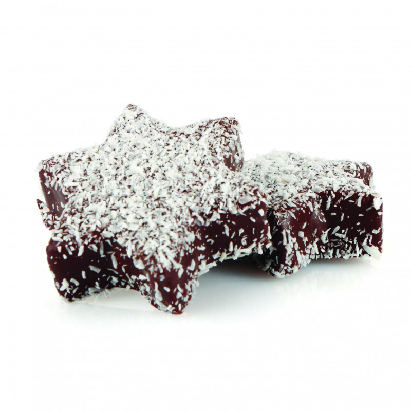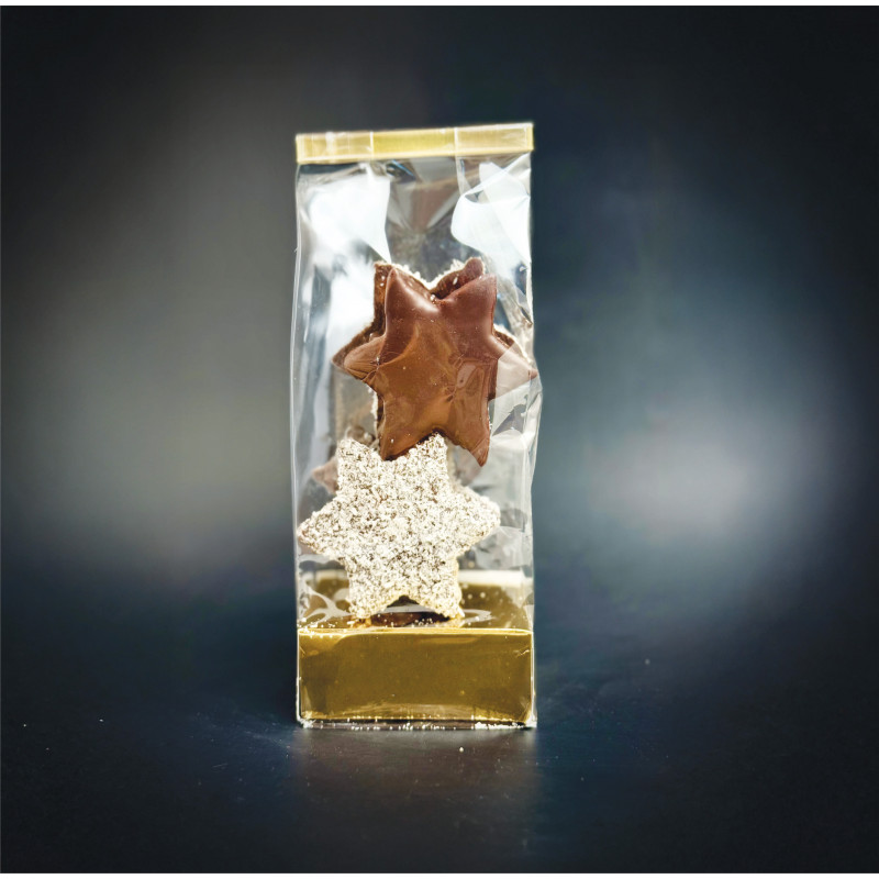 L’étoile de Noël, oui… mais pas sur le sapin ! Notre guimauve en forme d’étoile, enrobée de chocolat noir, fera briller vos papilles. De l’éclat croquant, la magie de la coco râpée et un cœur secret tendre… un petit trésor gourmand qui saura ravir petits et grands. Présentée dans un sachet pratique, c’est le cadeau parfait pour les fêtes, ou tout simplement pour s’offrir un instant de douceur.
