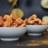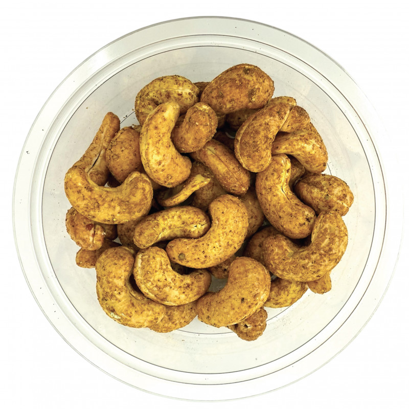 Nos noix de cajou, délicatement torréfiées, se parent d’un mélange d’épices d’Orient subtil et envoûtant. Curcuma, cumin, coriandre, cardamome, cannelle, gingembre, girofle, badiane… chaque épice apporte sa note, entre chaleur, douceur et légère intensité.